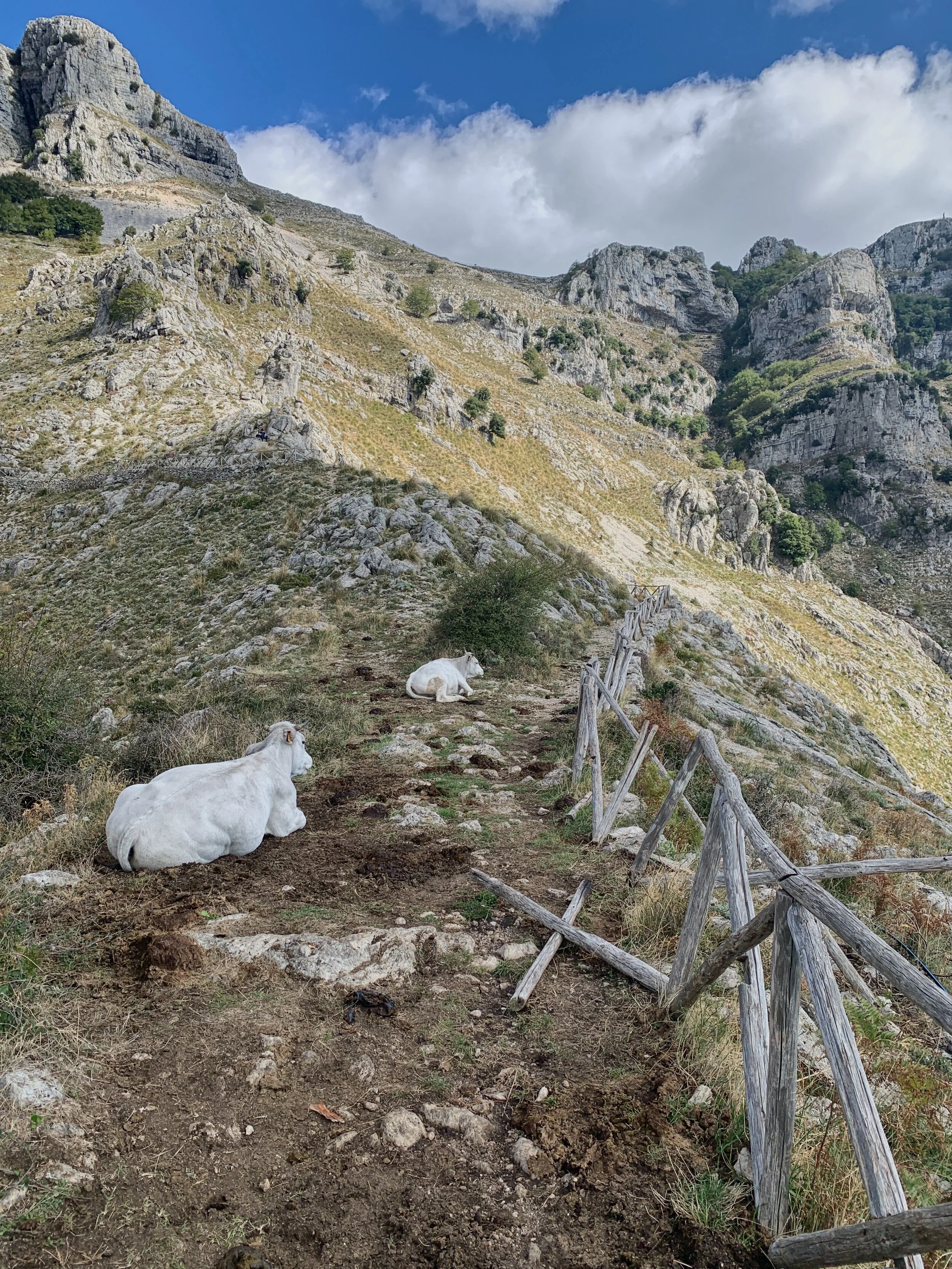 In addition to livestock you may also encounter the ‘cane da pastore’, the creamy white, thick-fleeced Maremmano dogs who serve as guardians of the mountains. If you encounter one, don’t be alarmed: simply stand still and let the dog determine you are not a threat before moving on your way.
