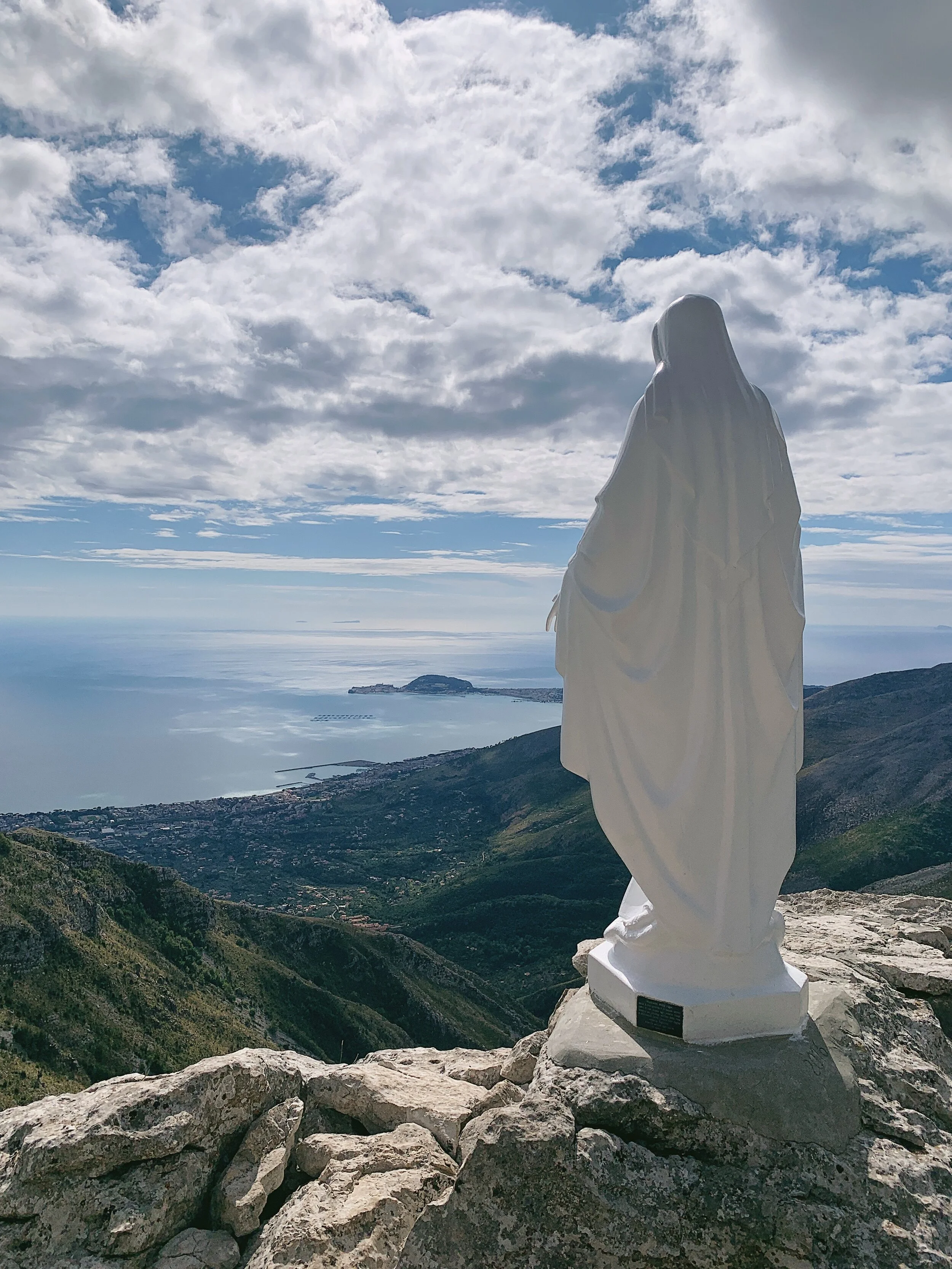 After the cross, the path turns back uphill and climbs in a series of 13 zig-zagging switchbacks. This is the steepest part of the hike though there are handrails for most of the way up. The second stop is the Madonnina - a pure white statue of the Madonna. At night there is a light which illuminates the statue.