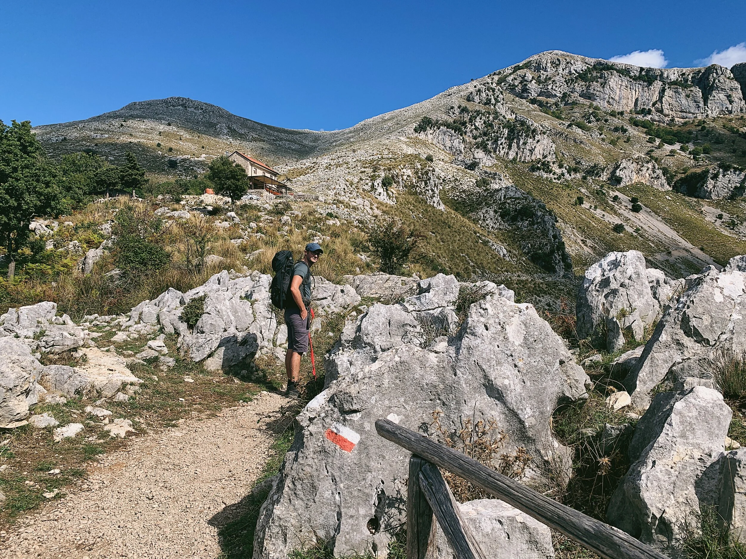 When you arrive back to the car park there is the option to walk uphill to the rifugio, which comes highly recommended for lunch and dinner. The only issue is that you absolutely must book in advance, even if you just want to stop in for coffee and cake. If the rifugio is fully booked or closed, there are a number of pasticcerie in Maranola, and a wider choice of shops and cafes still in Formia down on the coast. Taking a picnic up is easy as there are lots of large rocks to sit on.
