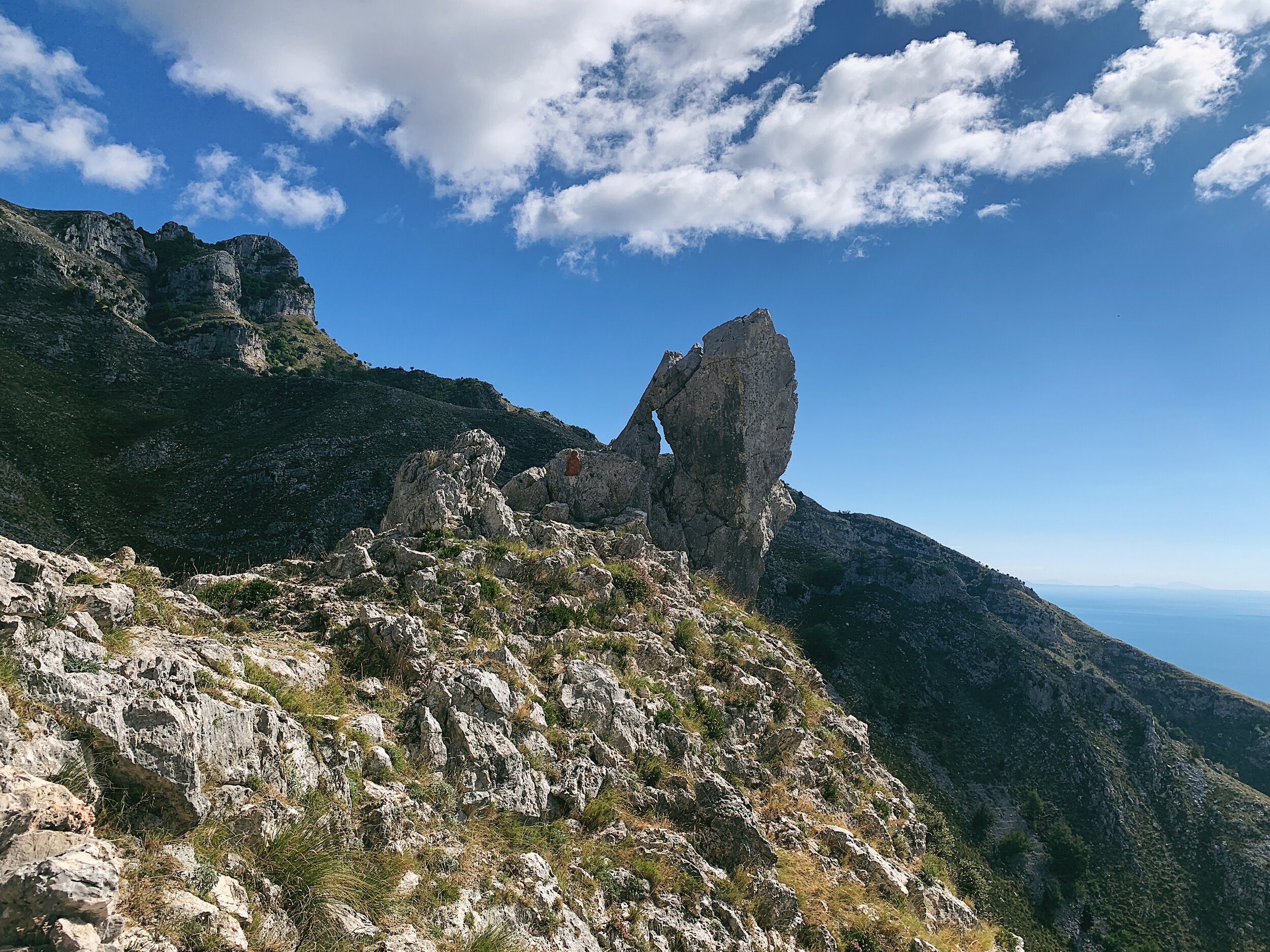 The Aurunci Mountains are situated in the region of Lazio, which though a little over an hour from Naples, feels markedly different (the driving improves, the people are inquisitively friendly and there is a lot less litter). Rising sharply from the Tyrrhenian Sea, they are capped with rocky karst plateaus with the lower flanks dotted in a continuous mix of scrub, large stones and pockets of woodland. In 1997 the mountains were incorporated into a protected park, the Parco Naturale dei Monti Aurunci.