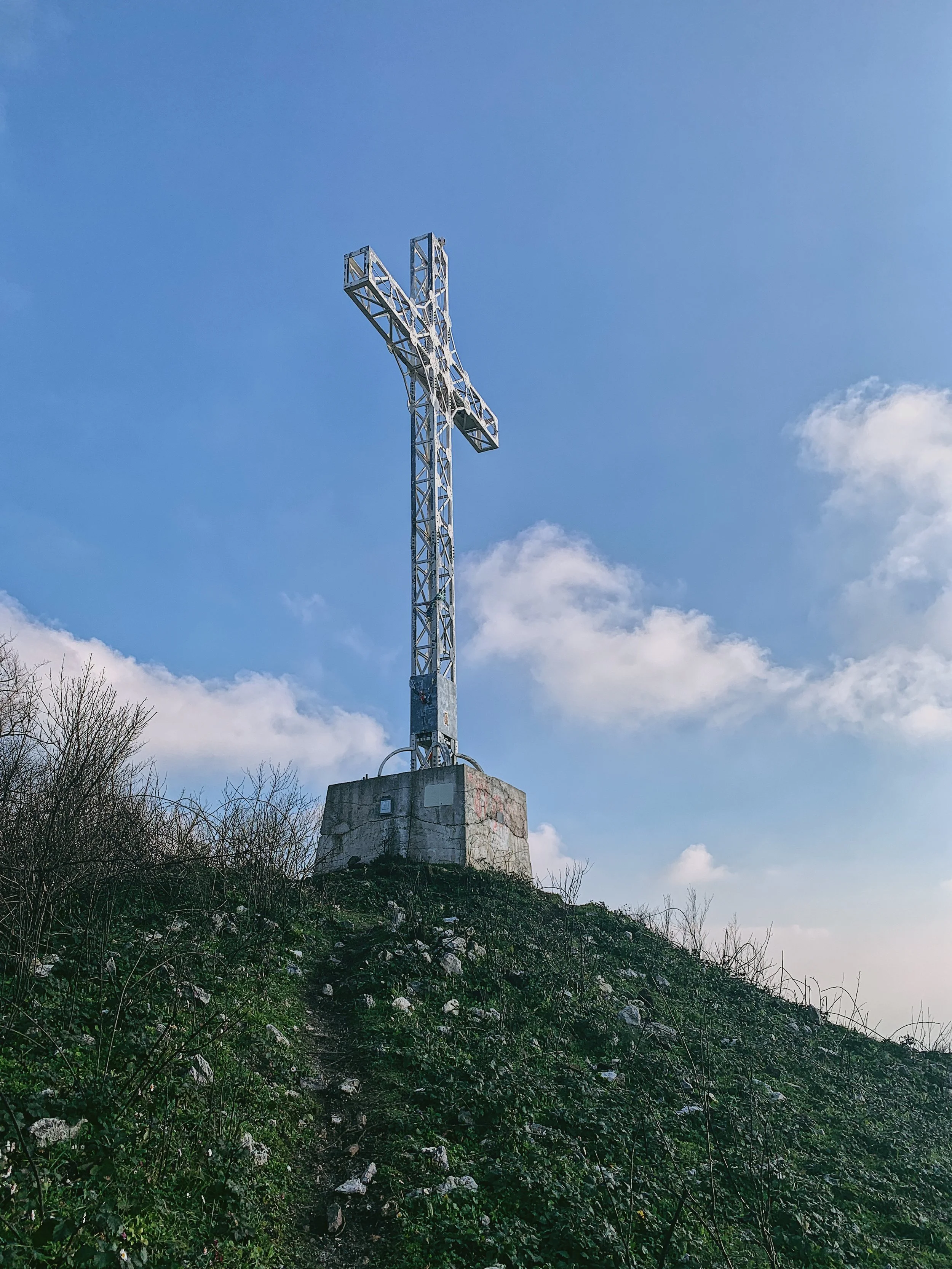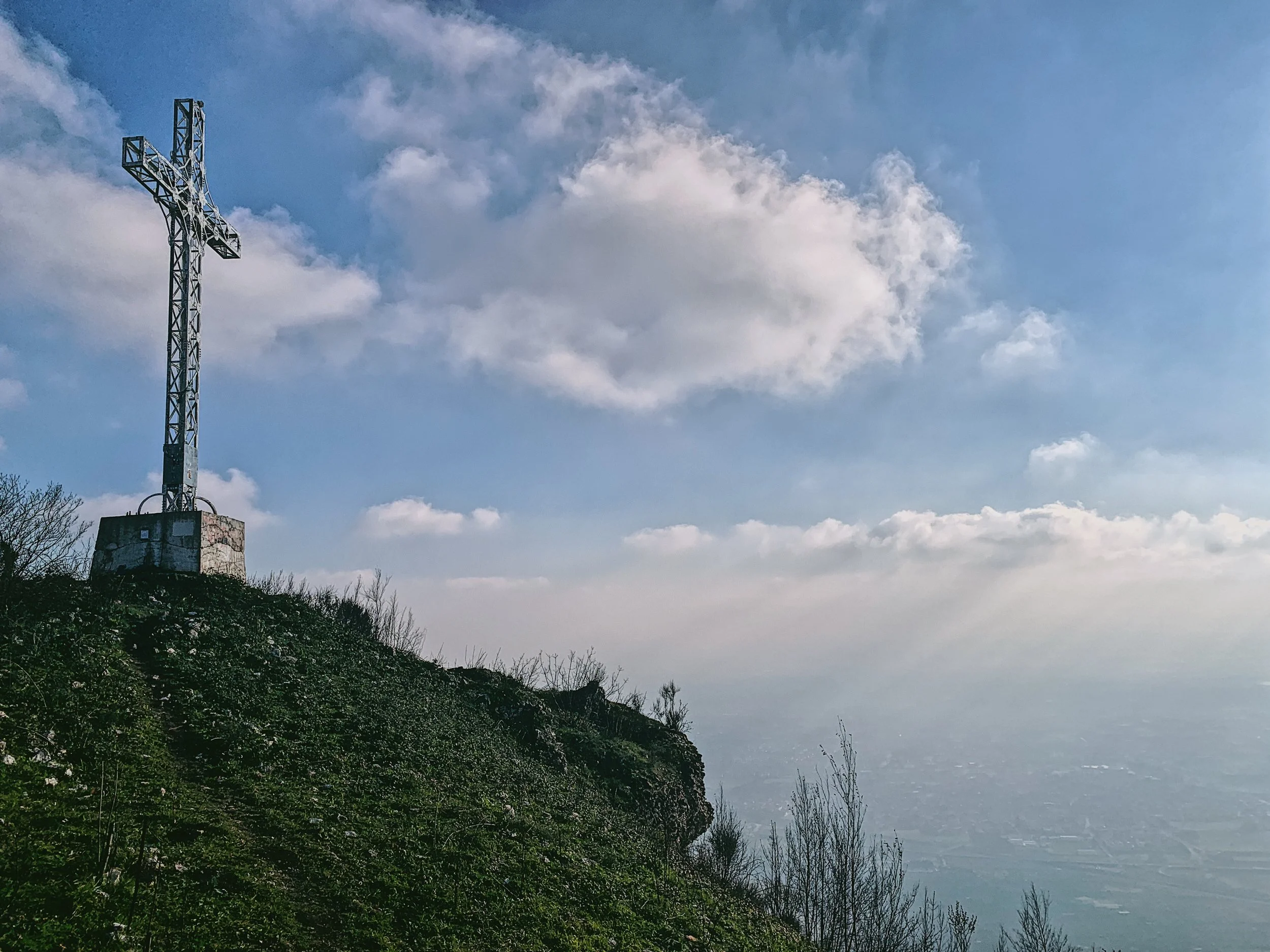 If you’ve ever driven south on the main A1 autostrada between Rome and Naples you may well have spotted Monte Tifata, a steep and jagged peak rising to a craggy summit with an enormous white iron cross perched at the very top. During the day it’s only just visible to the naked eye, but at night it lights up - not always, the electricity isn’t terribly reliable in these parts - but when it does it can be seen for miles around.