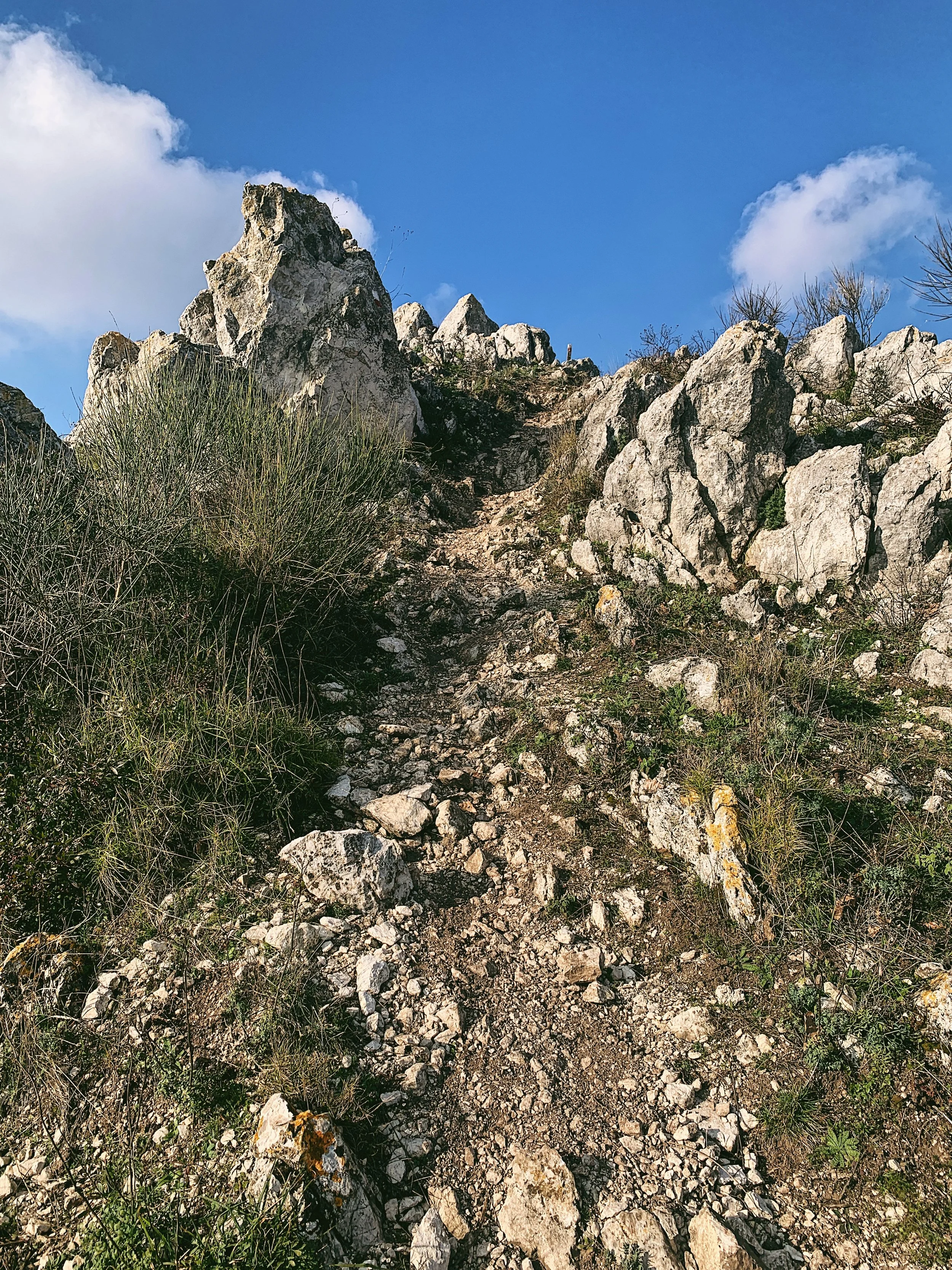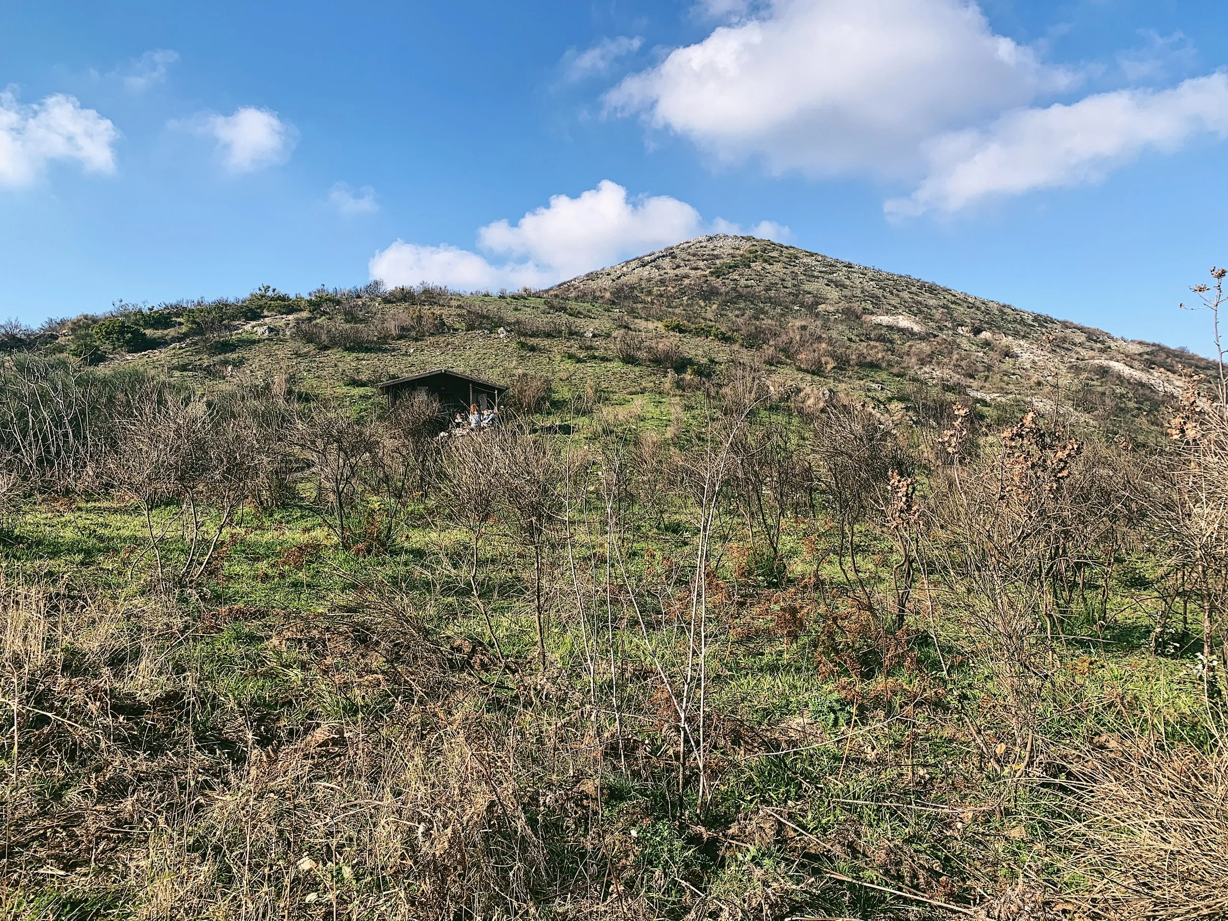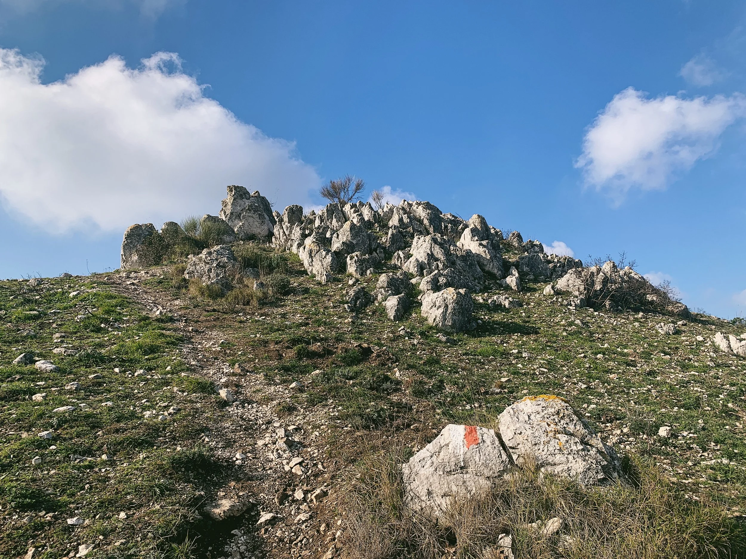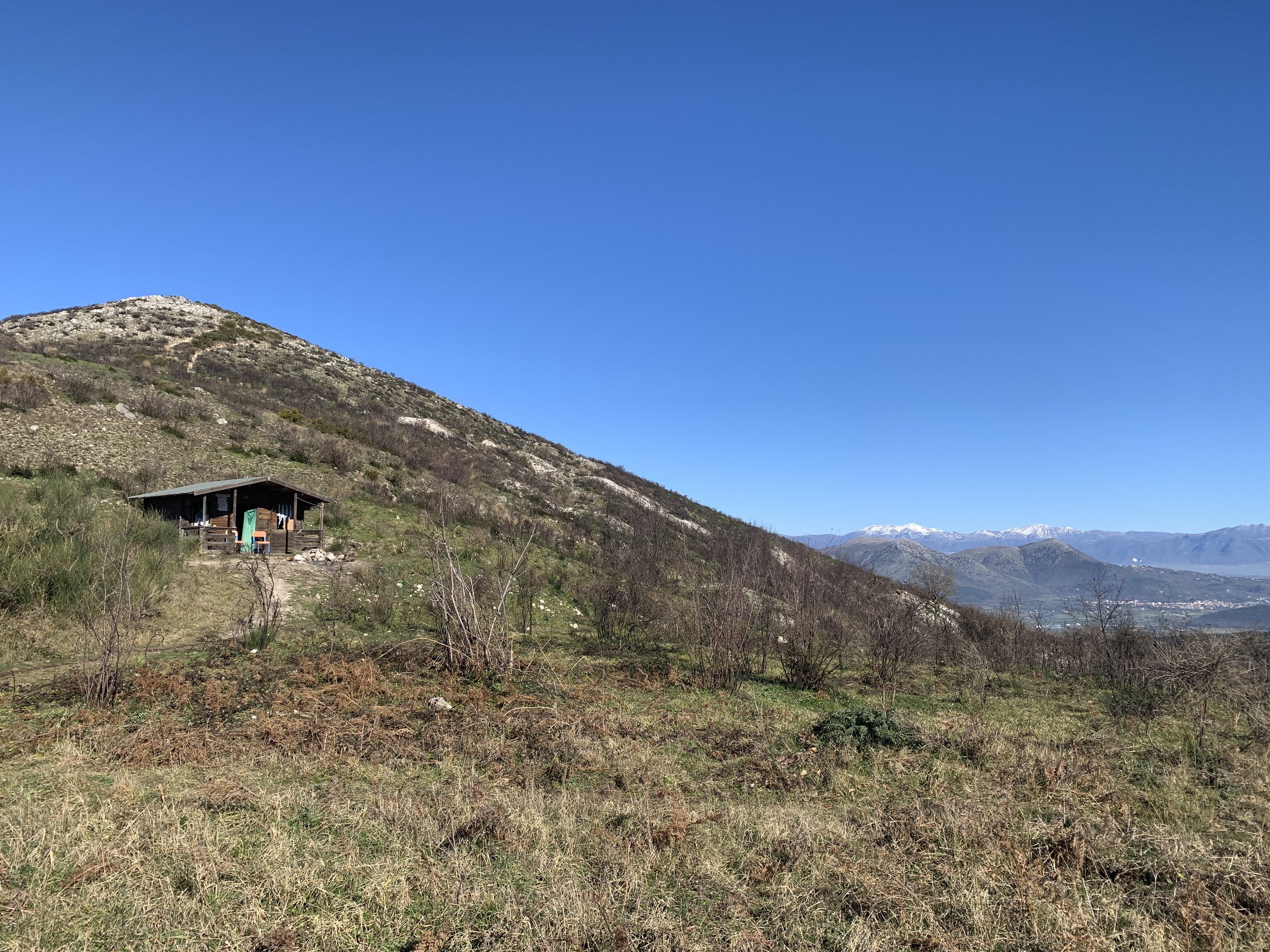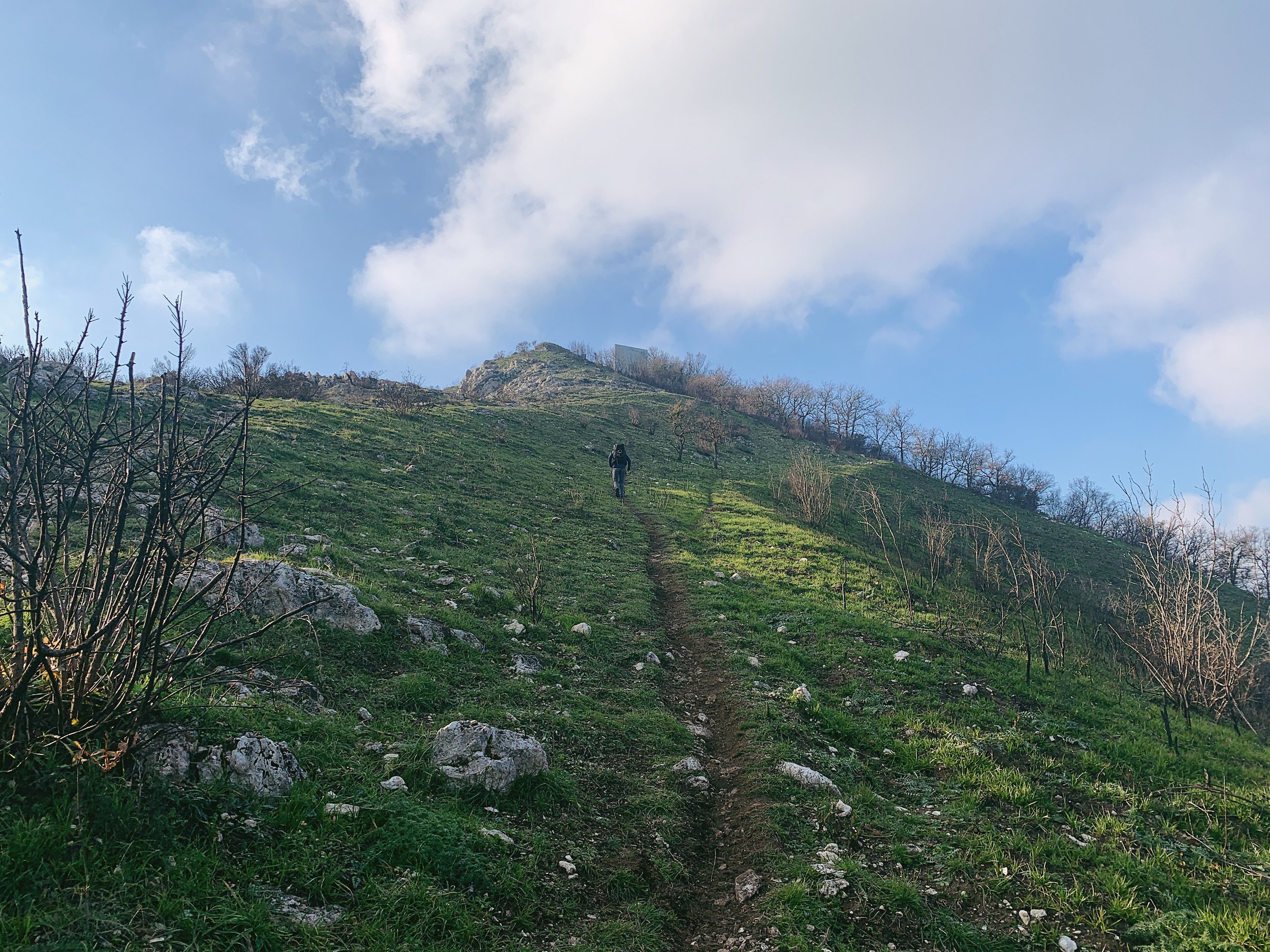 It’s a very popular landmark and those that live around the base are proud of their lofty peak; on a Sunday morning it’s not unusual to see a procession of walkers meandering up the side of the mountain. The first part of the walk is very straightforward, up a dirt track to a grassy area littered with spent shotgun cartridges of varies bores and primary colours, where there’s a small, unguarded rifugio with a firepit out the front.