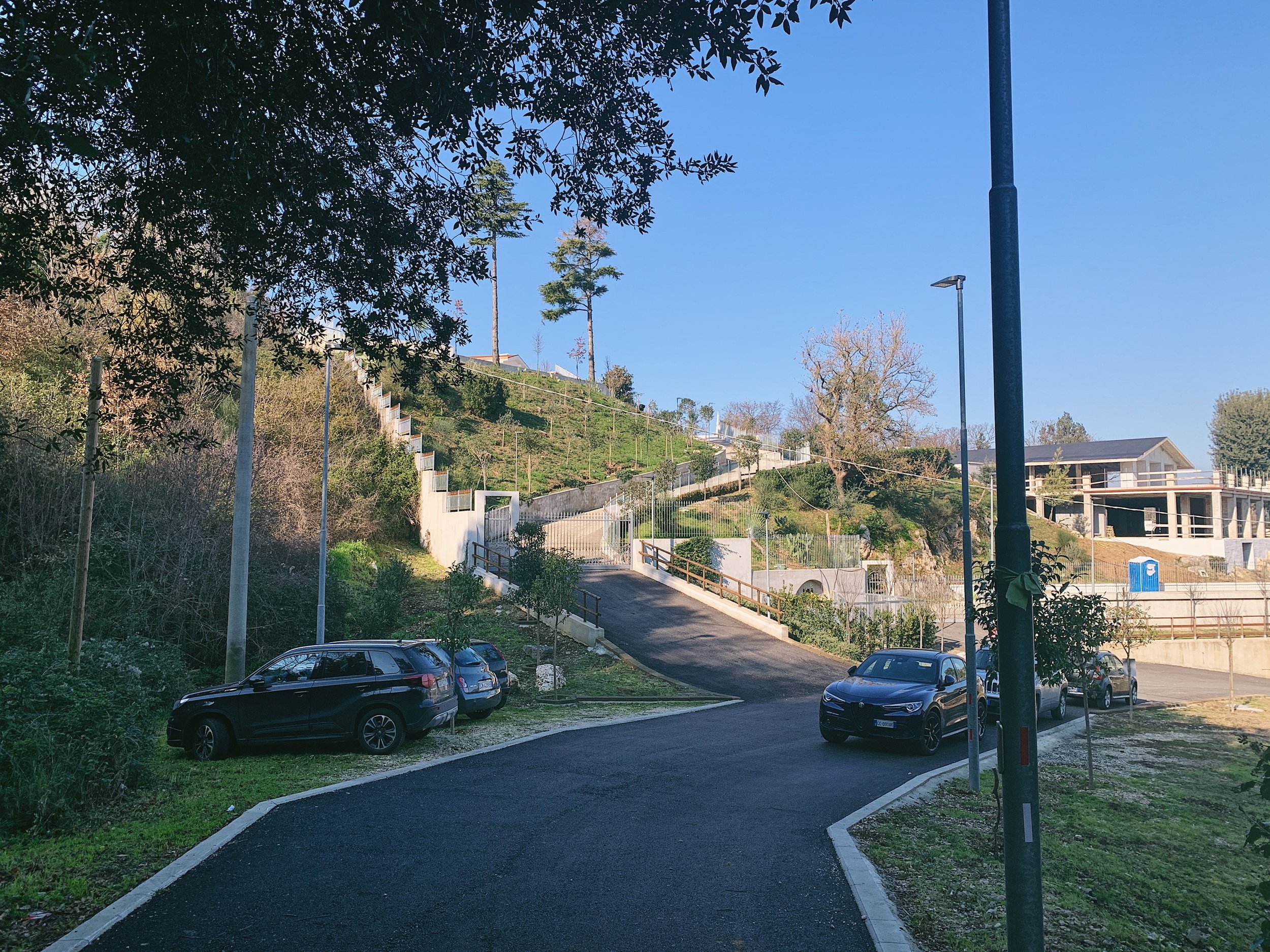 Leave Caserta on the SP336 and after leaving the little row of shops, slow down and take a sharp left turn onto a very narrow track, called via de Maria Francesco Saverio. This follows a residential road around several large villas up a very steep hill to a parking area where there are lots of solar lamps. The parking is limited but you can pull onto the grass - just don’t block the driveways of the big houses.