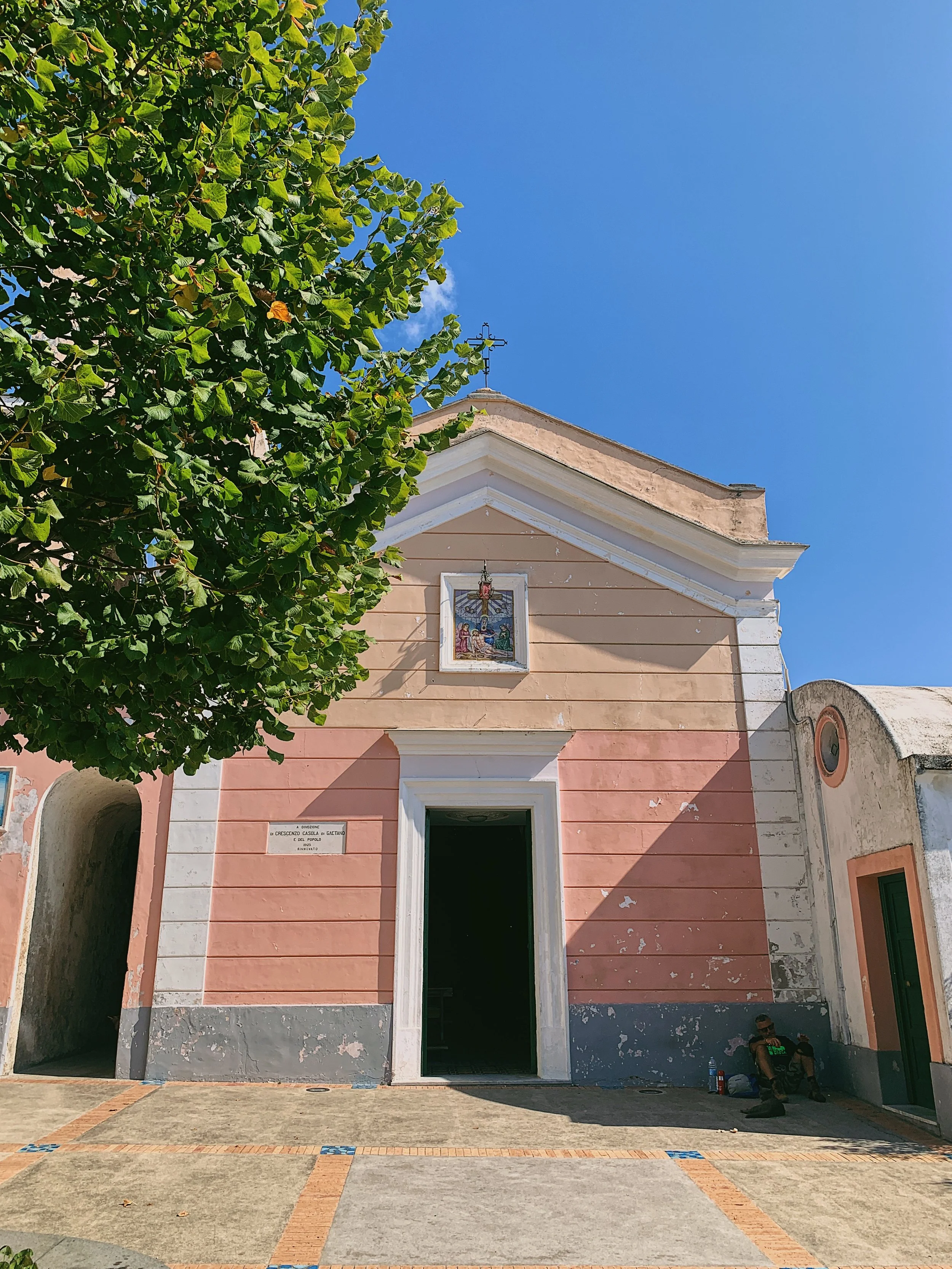 After a particularly rocky section through the trees, the path levels out slightly as the houses of Nocelle come into view. It then becomes concrete and passes under the arch of the chiosco. Continue through the village following the signs; take the short flight of stairs downhill (there is a drinking fountain on the right) until you reach the very pretty Piazza Santa Croce, where there is a granita and juice stand (Lemon Point) and a lovely church. This is a great spot for enjoying the view and a picnic.