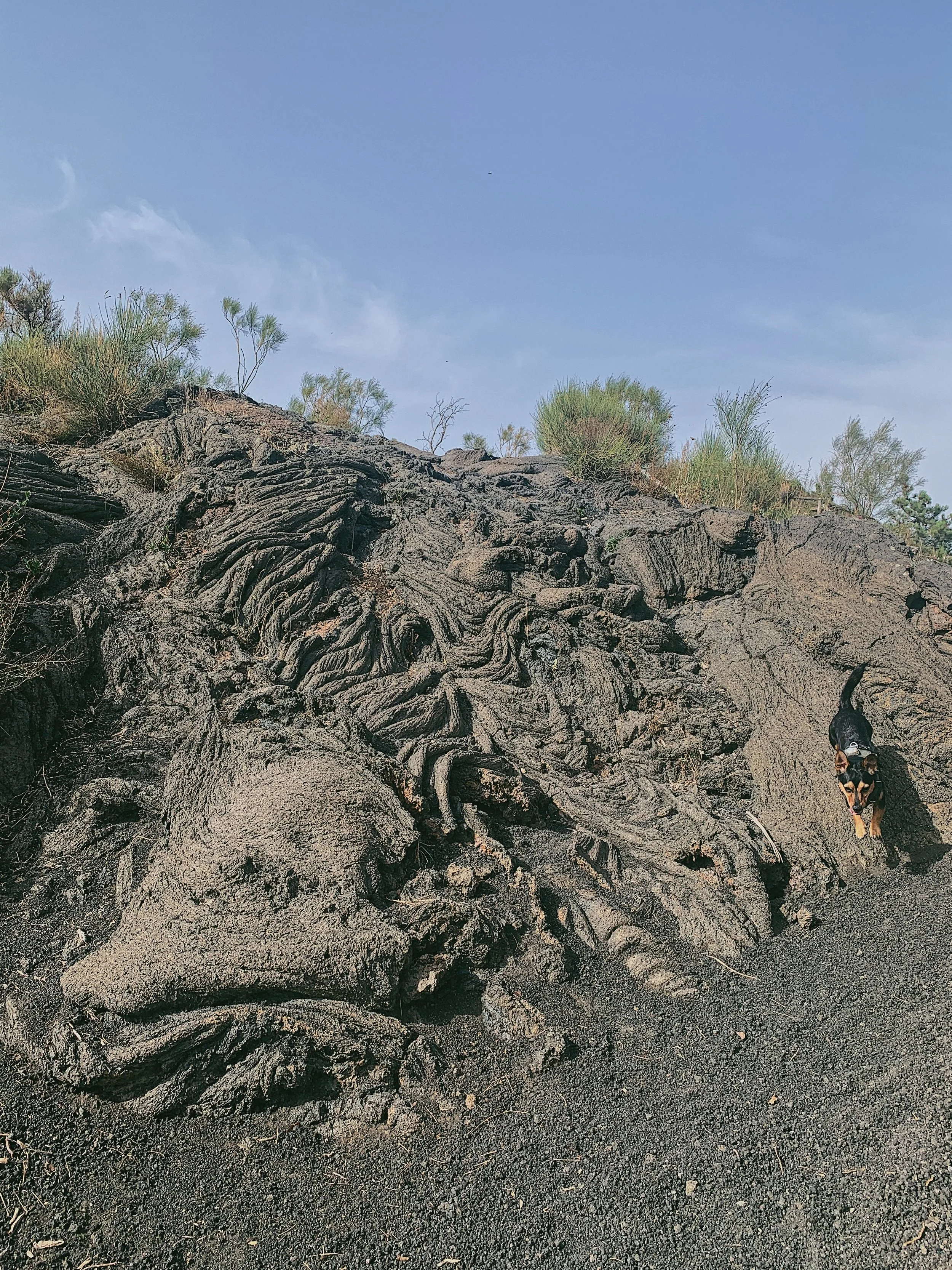 ‘La Valle dell’Inferno’ translates as ‘the Valley of Hell’, and during previous eruptions of this sleeping beast that’s exactly what the area would have looked like. The crater spewed forth a terrifying and explosive cocktail of pyroclastic deposits - ash, pumice and lapilli - which rained down on the flanks of the cone leaving behind fragments of pulverised rock, minerals and volcanic glass, while changing the shape of the landscape forever. Most notable is the ‘lava a corda’, or rope lava, whose sinuous lines snake down the mountain as if the coils of thick rope. As the surface of each ripple cools, it forms an external layer which is borne along under the fluid magma underneath, curling into folds. (Personally, my favourite lava formation is called a ‘clinker’, which is basically a very irregular hardened block. It’s just fun to say).