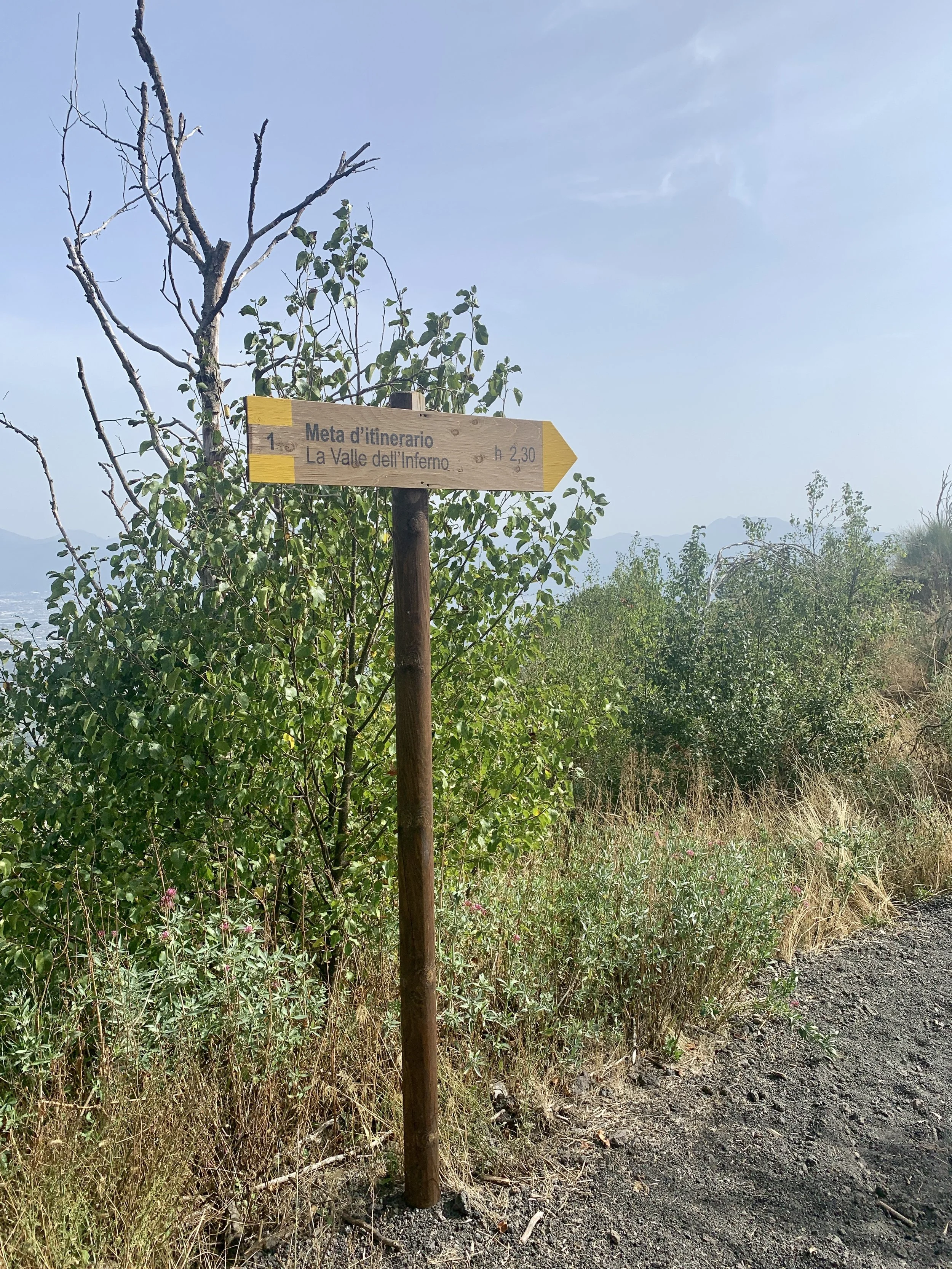 Leave the commune of Ottaviano on via delle Delizie, winding uphill on the lower slopes of the mountain through the trees. As you leave the town centre you’ll pass the Medici Palace on the left-hand side; the castle dates back to the Middle Ages and has undergone significant changes. Now in the style of a Renaissance palace it is home to the headquarters of the Parc Nazionale del Vesuvio. You’ll pass a number of rather upscale resort hotels on the way up until the road widens to a parking area on the left next to a scruffy concrete hut. There is a riding school downhill from here but if you get to it, you’ve gone too far. The parking is free and unsecured; I have left my car here without incident but do make sure you’ve removed anything that might attract thieves, as per usual.